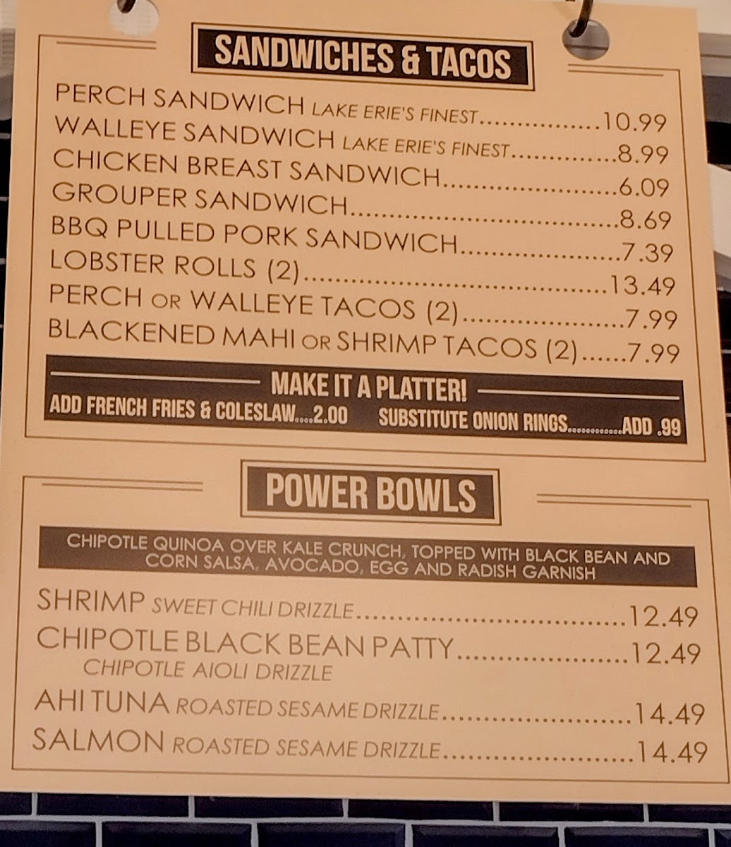 The menu is a seafood lover's paradise, featuring mouthwatering options like Lake Erie Yellow Perch and Walleye, both served as crispy chips or tantalizing tacos. Indulge in the Shrimp Chips or savor the deliciously seasoned Oyster Chips that set the tone for a delightful dining experience. Each dish is crafted with fresh ingredients, guaranteeing flavor in every bite.